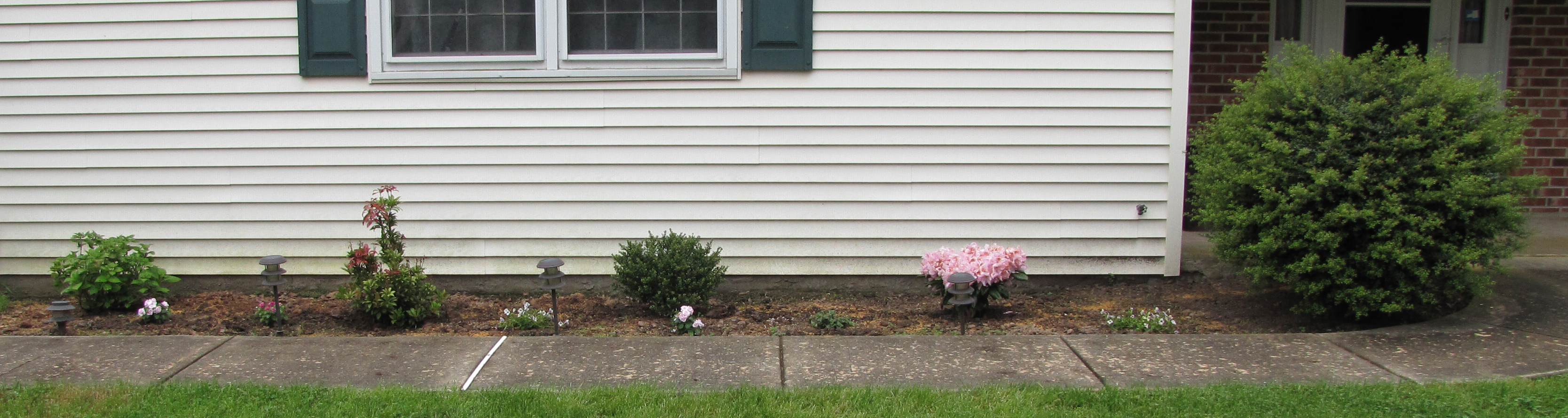 In The Garden 14 Monday May 2012 Original size at 3335 × 890 ≈ Leave a comment Flower Bed Left Flower bed to the left of the front door showing new plants and the one existing shrub. Hydrangea, Mountain Fire Pieris, Ilex, Rhododendron, Ilex